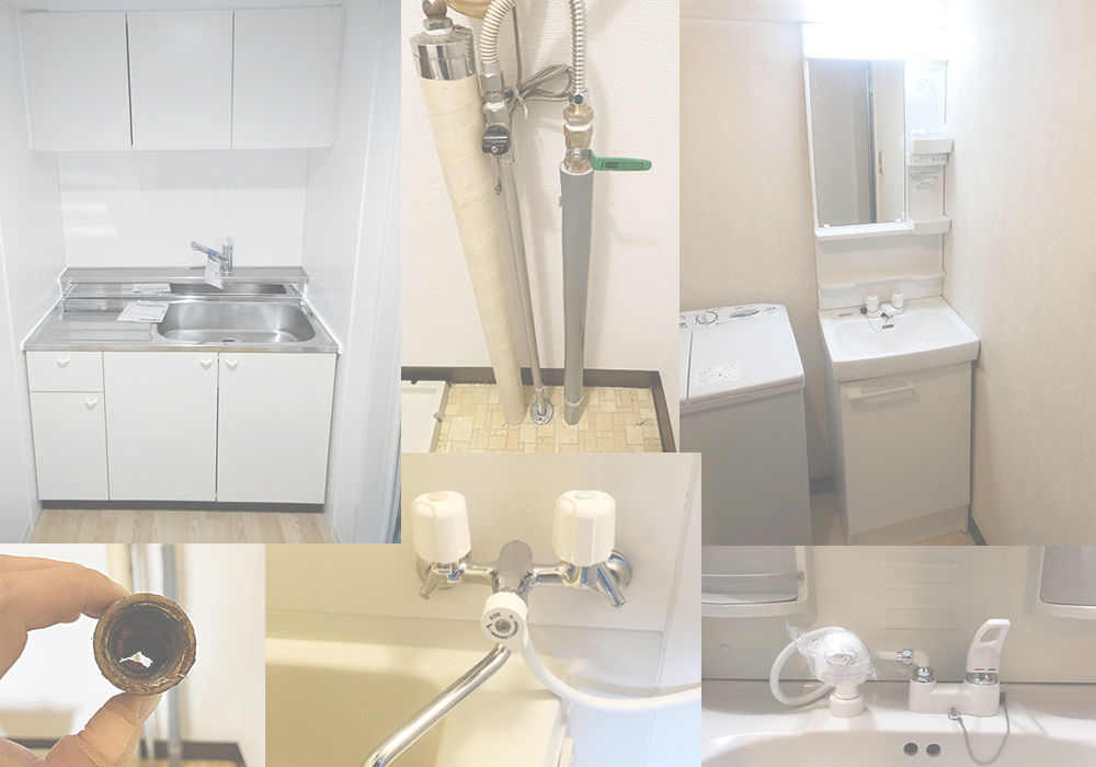 「給湯室のリフォーム」「洗面台の交換」「水栓の交換」「給湯器の給水管の交換」をご覧ください。
