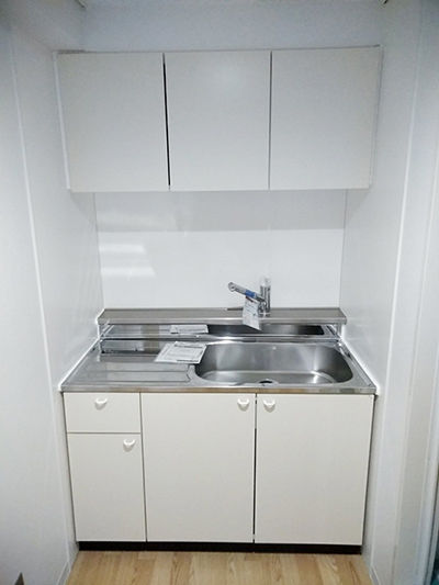 【施工後】 白を基調とした明るい雰囲気の給湯室に生まれ変わりました!