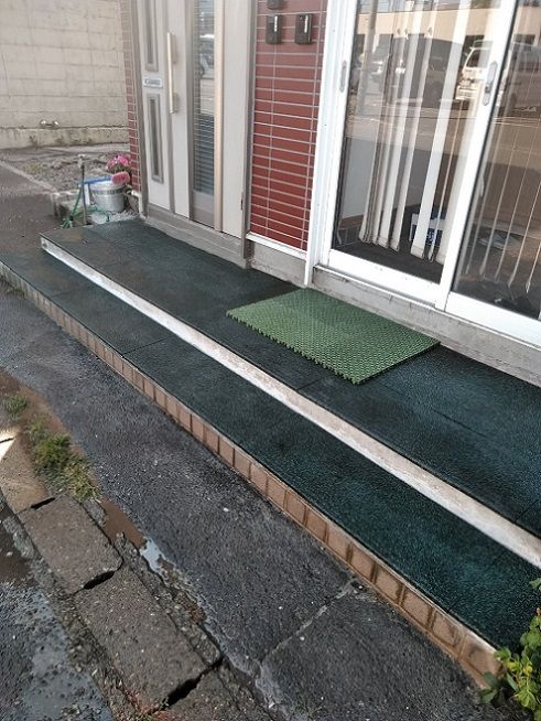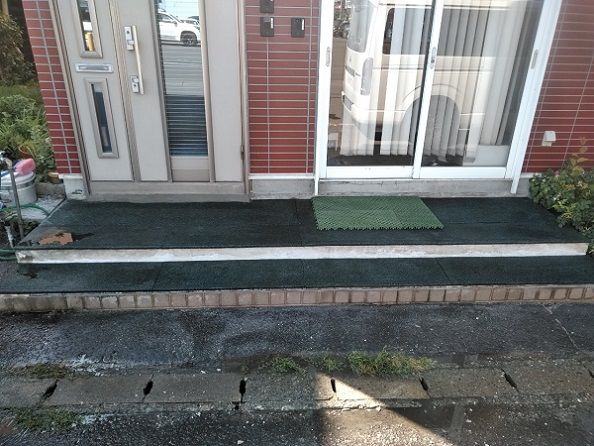 玄関ポーチ階段の補修&ゴムチップマットへの変更工事を行いました。